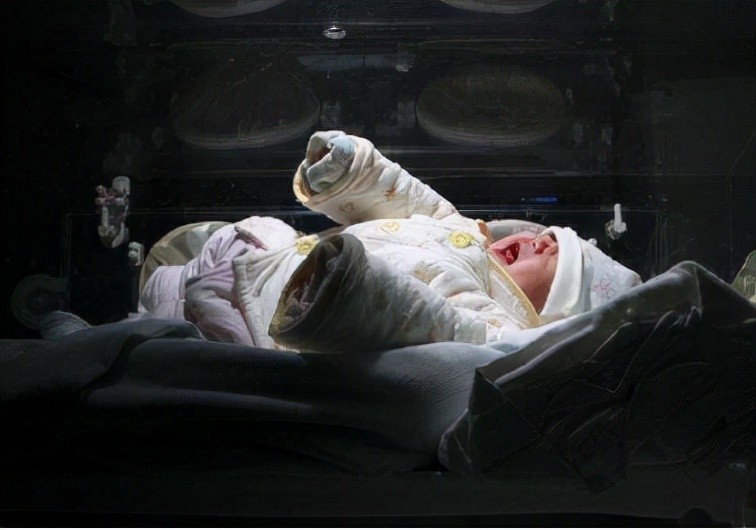 十个月以后,她独自一人生下了一对双胞胎。
