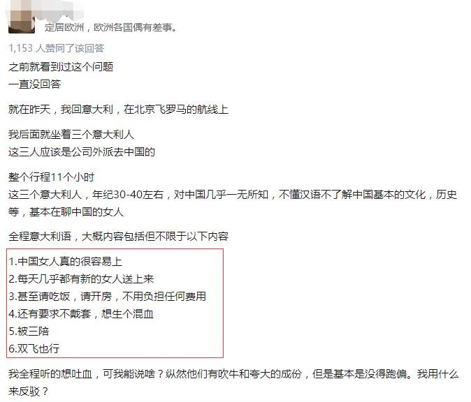 @追梦Mr黄:比渣男还废物的番邦loser。去成都保利大厦,去三里屯和五道口的酒吧一条街去瞅一下有多人如许的洋废物搂着中国妞酗酒骂街。这些人一面在FB上骂中国,China前方长久跟的是Fuck,一面泡着中国妞,跟她们说I love china,而后秀几句糟糕的汉语,四周的中国人便感谢涕零,泪流满面。
