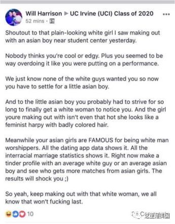 事务的来由是,加州大学一白人夫君瞅到别名亚洲夫君聚会白人女性,一气之下在社接网站曝出这对于情侣照片,并跟帖欺侮。