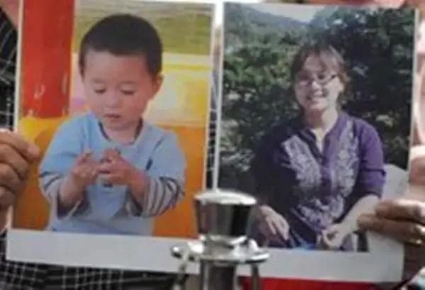 原告席上的死者家属,拿着被害母子的生前照片,抑制不住内心的伤痛,在法庭上痛哭失声大骂凶手残忍冷血丧尽天良。