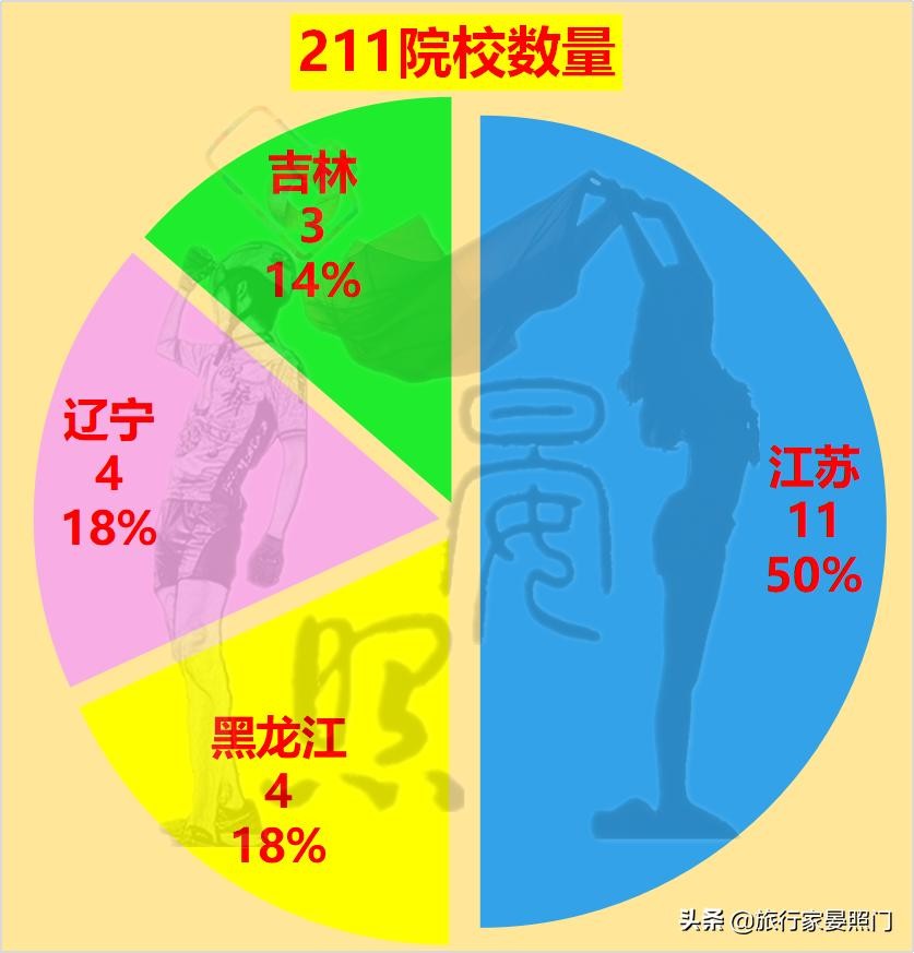 1、江苏拥有11所211顶尖学府,相互占比50%;