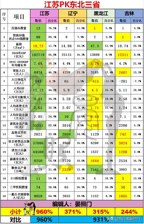 东北三省对比江苏结果会如何?20项核心数据为您全面解析