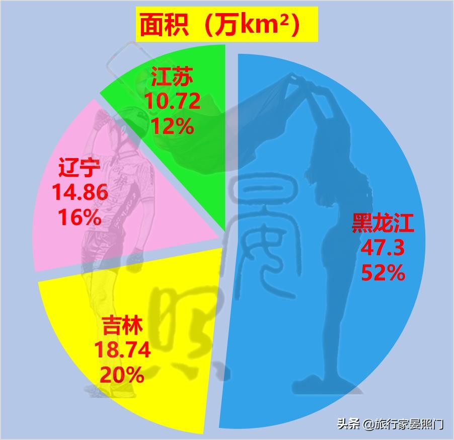 实力最强的江苏,面积竟然只占四省的12%,即便是单独和黑龙江相比,也只有其的22.7%,如此巨大的“身高差”犹如大象和雄狮。