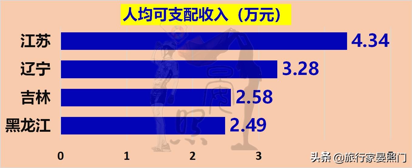 虽然东北三省在人均GDP上全部大幅度低于全国均值,但是辽宁却在更具有含金量的人均可支配收入上高于全国均值,最燃和江苏依旧无法相提并论,但至少也为东北三省避免全军覆没做出了巨大贡献。