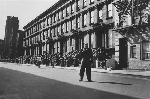 诗人兰斯顿休斯站在哈莱姆区的街道上,1958 年。