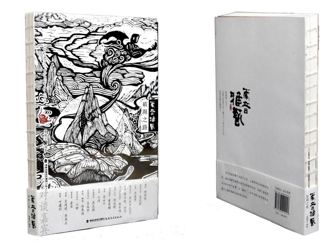 该书装帧形式为裸背穿线装。封面采用南音雅艺社团一位学员以南音曲目《山险峻》创作的版画作品《南音飞天图》为设计元素,表达了南音传承的艰辛和南音破圈之路的艰险。考虑到“银”在闽南文化中扮演着重要的角色,在闽南日常生活中有着重要的文化意义和象征,因此,该书封面图采用烫银工艺,与地域文化相结合,既体现传统文化的含蓄特色,又具有人文气息。封面文字和黑色块烫哑光黑,点缀哑光红飞天小图案,以极简图形表达主题。前后环衬选用较稳重的红棕草香纸,内文为纯木浆胶版纸,四色印刷。每个章节以作者与不同地区不同领域的南音圈外人的交流为主体,文字、图像、色彩有机结合,图文并茂,营造舒适的阅读空间。腰封采用半透明米白纸,主体与副体相互辉映。该书装帧设计获2024第十三届华东书籍设计双年展整体设计特等奖。