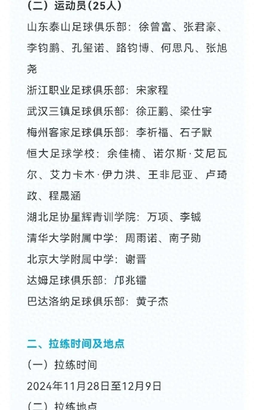 11月21日,中国足协正式公布了2009年龄段U15国少队的最新集训名单。