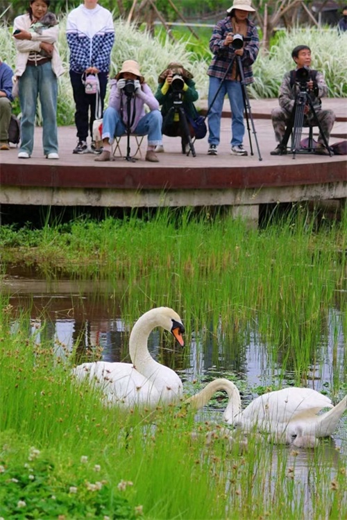 拍摄天鹅的人群(图源:张尧凯)