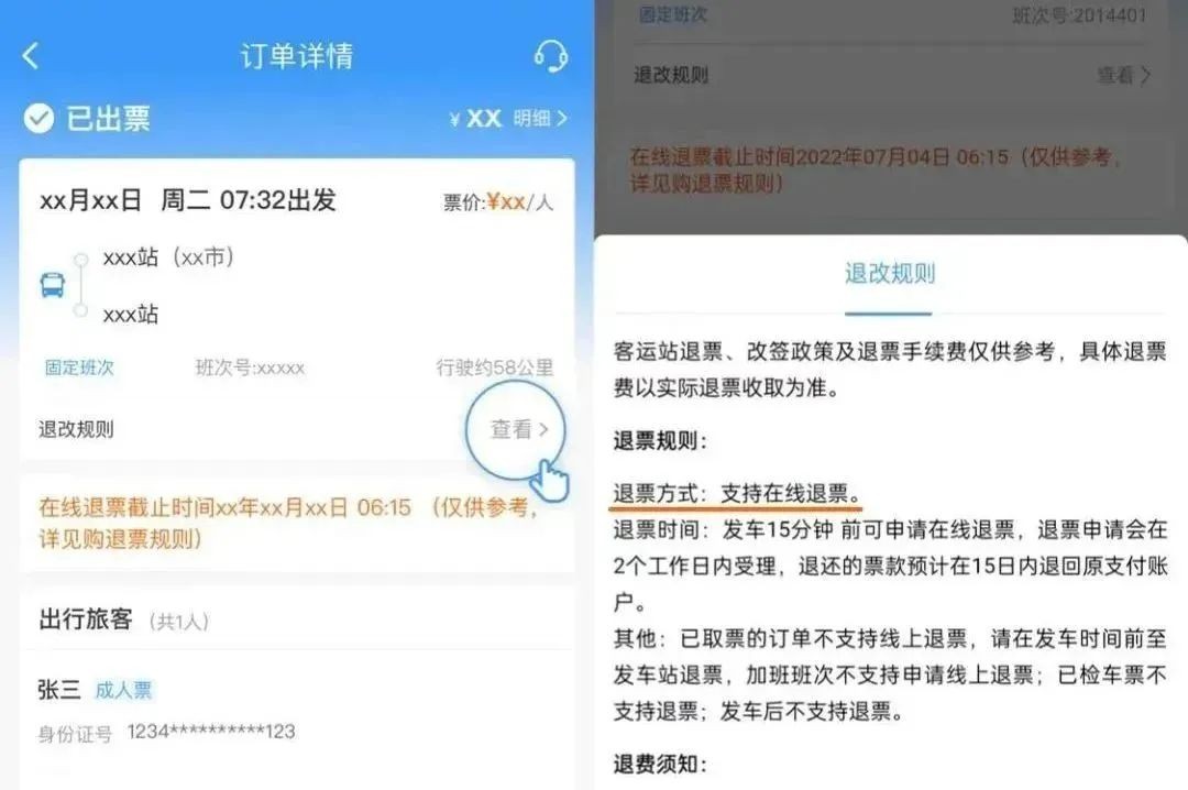 (部分车站不支持线上退票)