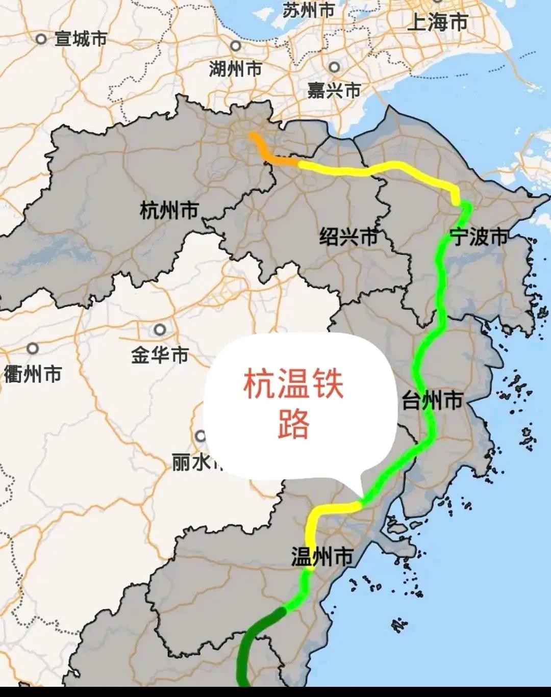 目前,杭州至温州的高铁,主要是走绕行宁波和台州的东线,即先走杭甬高铁到宁波,再走甬台温高铁经台州到温州。