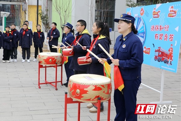 2月10日,鼎城区红云小学春季“开学第一课”直播活动现场,鼎城消防宣传服务队和2名同学表演了消防特色宣传节目“三棒鼓”《全民同唱消防歌》。