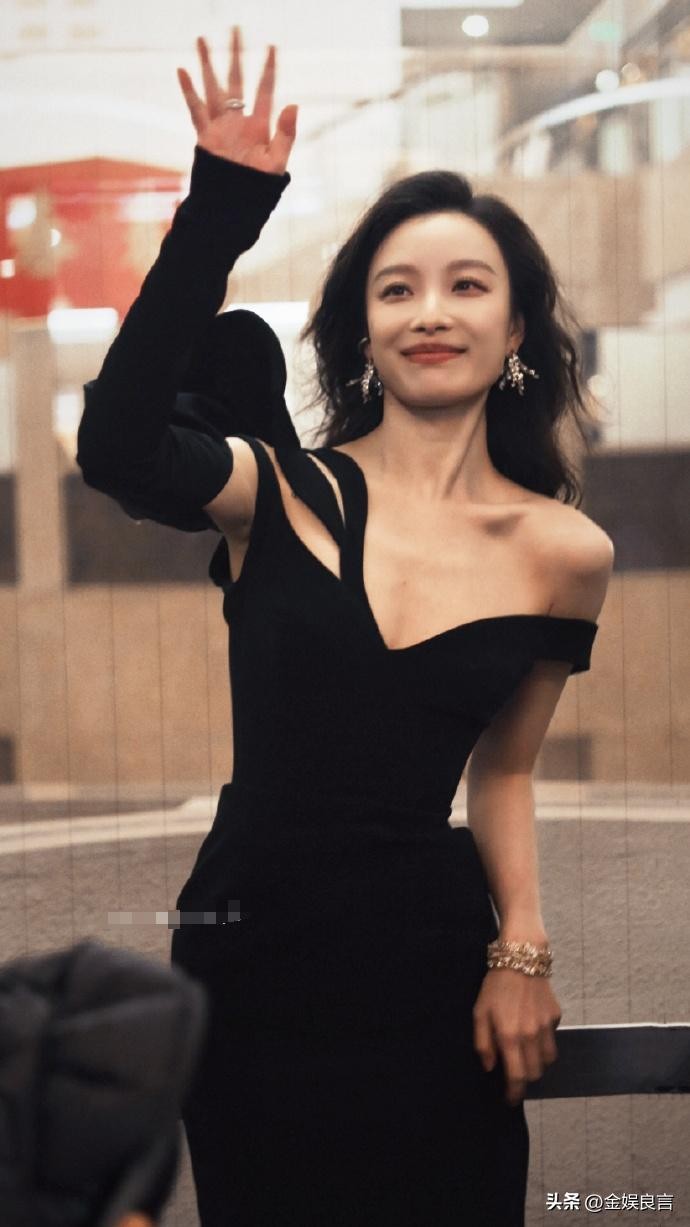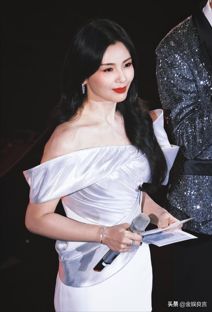 披肩的黑色长发搭配上媚而不妖的大红唇,一席露肩的纯白色抹胸长裙,直接让已经46岁刘涛年轻了将近10岁,大有一种时间在她身上静止了的错觉。