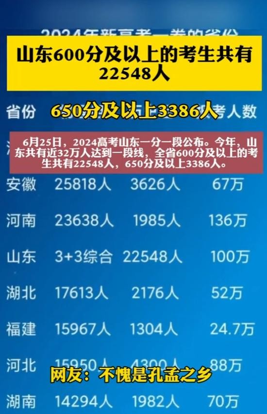 说到高考,分数和排名可是大家最关心的问题。在山东这个高考大省,649分只能排到3387名,599分更是只能排到22549名。这数字一出来,我就忍不住感叹:山东的孩子真是太不容易了!
