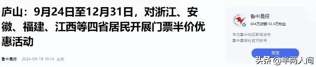 另外,庐山风景区还推出了针对特定地区居民的半价门票活动。