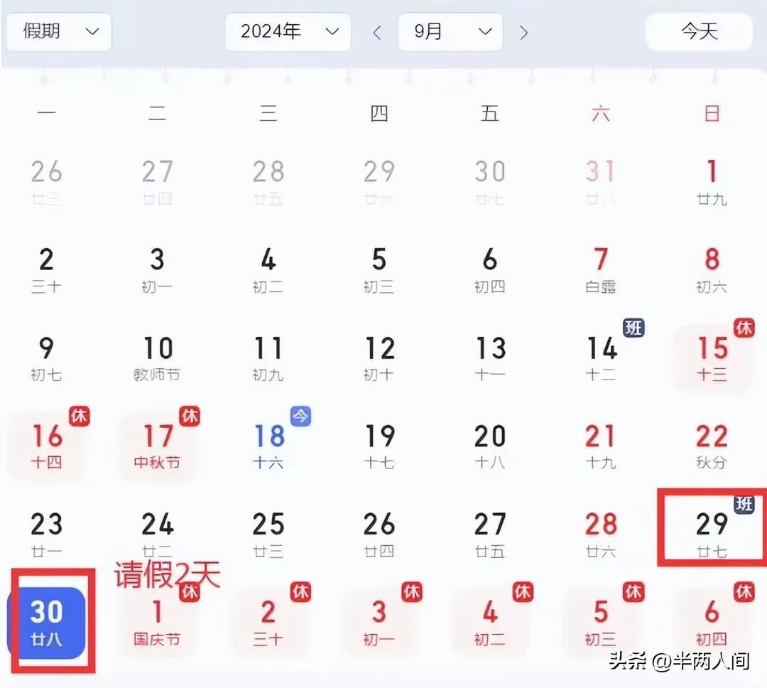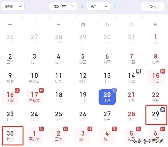 9月29号和30号这两天,虽然是周末和周一,但为了国庆假期要提前来上班,这就像给假期前强行加了一层“工作模式”。