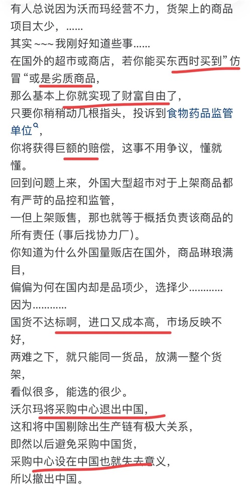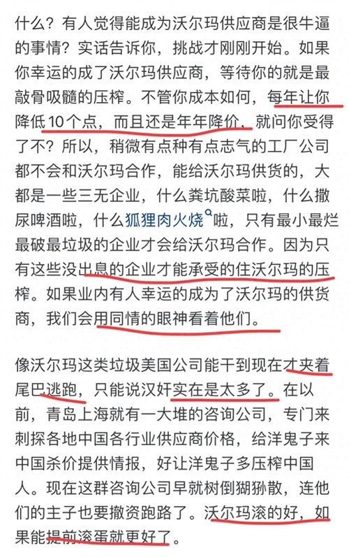 你把国内的沃尔玛退市和沃尔玛的国际订单搞混了,两者是完全不同的两件事,而且,沃尔玛的验厂也没那么贵,实际上,能通过沃尔玛验厂的往往都是大型工厂,小破垃圾厂根本不可能通过。沃尔玛的订单虽然利润往往偏低,但是因为量大,国内还是有很多供应商愿意做的。