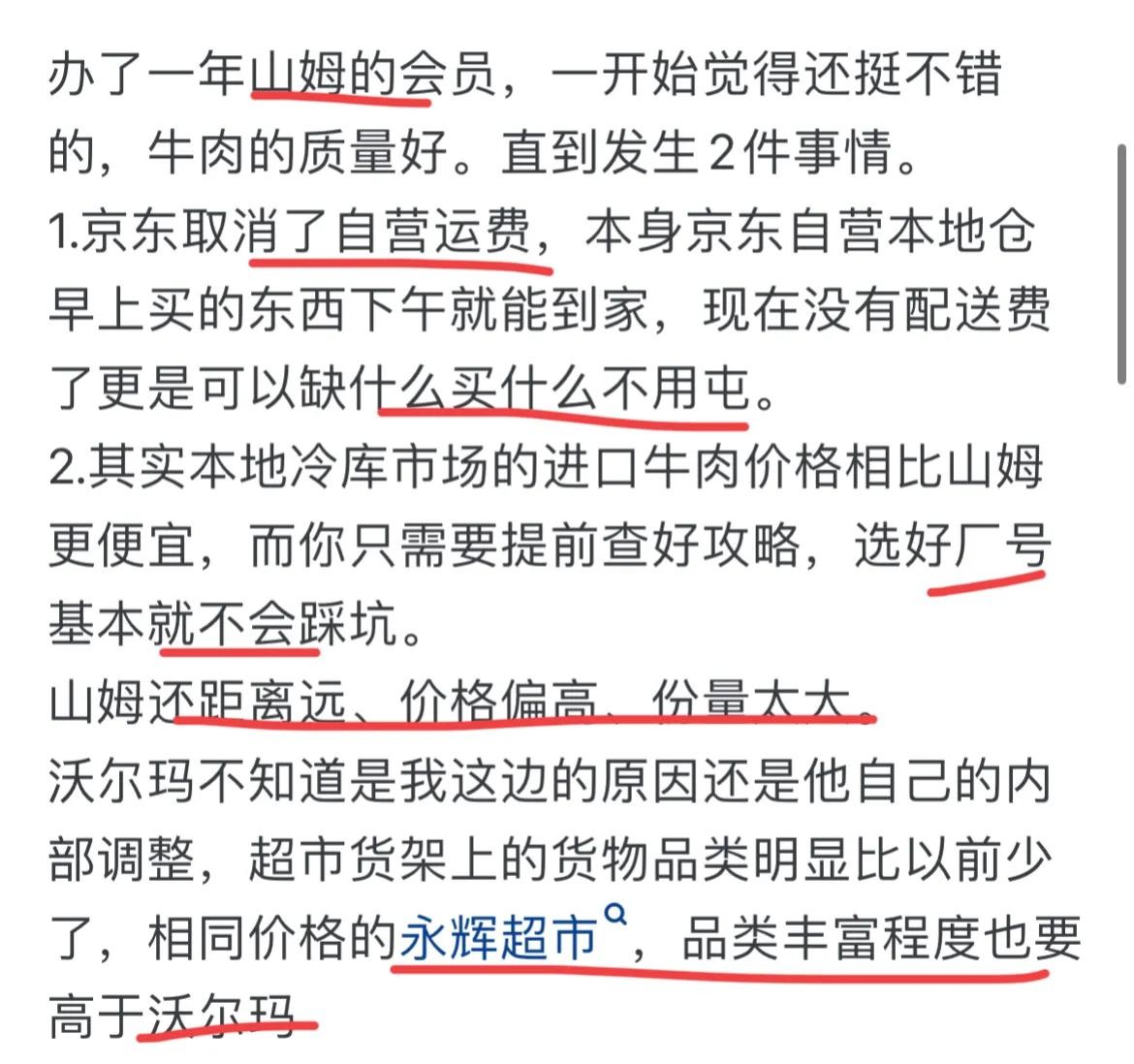 我小时候家里就去山姆买东西,到现在我都研究生毕业了,家里买肉、奶、卫生纸、海鲜、甜品这种需求量大且品质不好把握的东西还是去山姆,其实就是图一个省心,品控比盒马或者永辉这种强太多了(我们这边永辉一副半死不活的样子)。我相信绝对有比山姆包装小品质好且便宜的,但真不好找啊,你去任何一个社交软件上搜绝对是一堆广,买东西就像开盲盒。假如我每个月花1个小时去挑,一年就是12个小时,1.5个工作日,以我的工资水平,200多一年的山姆会员卡,足够我开到孩子上小学,况且还能送别人一张,持有成本更低。