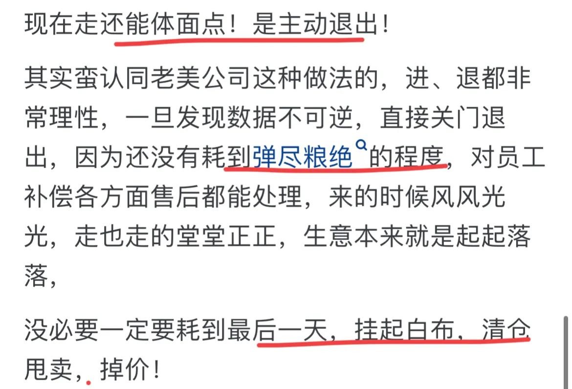 确实外企或许多是职业经理人管理吧,该扩张时大笔投资,不行了果断裁员,再不行直接退市,很少耗干最后一滴血。也不是都取得了很大成功,但是这种理性的商业思维还是很不错的