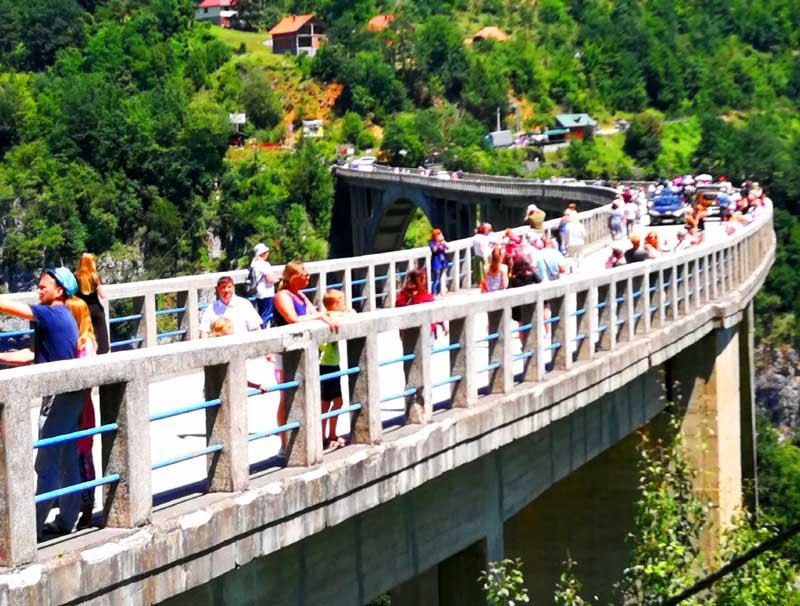 大桥最初建于1940年,在第二次世界大战期间被炸毁,后又于1946年重建并保留至今。曾风靡中国的前南斯拉夫电影《桥》,就是根据当年游击队炸桥的史实改编并在此拍摄的。这座塔拉河谷大桥连通了桥两头的小村庄,方便了人们的出行。大桥非常壮观,从近处根本看不出其壮观之态,远观或是从空中俯瞰,或是从桥下向上看,就会深切地体会到其宏伟之势。