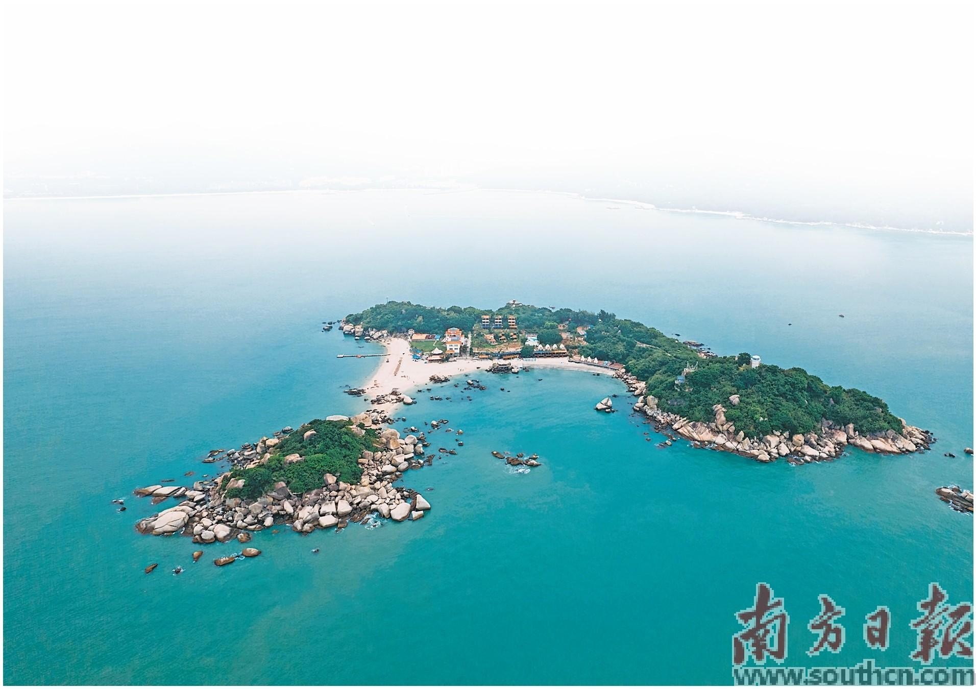 白色细沙海滩、碧绿的海水、热带植被和古老的海洋文化遗址等自然景观和人文景观……在惠东县稔平半岛的巽寮湾海面上,一处形如三角的岛屿游客如织,这里自然环境得天独厚,海水清澈湛蓝,沙滩洁白,已成为珠三角地区优美的滨海度假胜地。