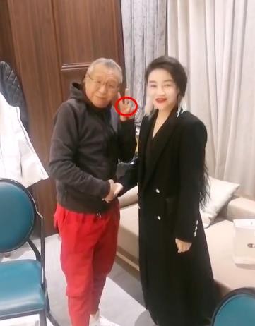 合影的美女也看着镜头摆摆手打了声招呼,随后马小明也跟着比了个耶,还能看到他手上戴着一枚金灿灿的大戒指,看来他的晚年生活确实过得还算潇洒。
