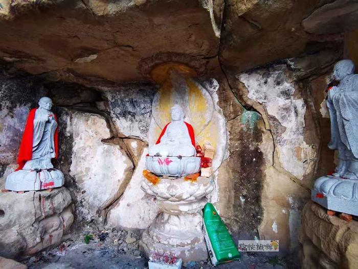 寨门旁边是摩崖造像的集中地带,感觉稍微平整点的地方都能刻上造像,非常遗憾地是许多造像和题刻毁损特别严重。