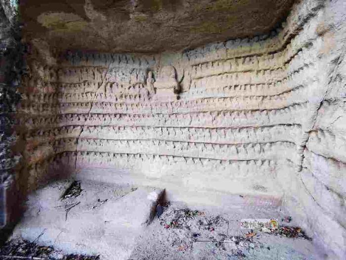 文保单位题刻旁的龛相对比较大,宽有2米多,高近2米,80多厘米深,在葛仙山摩崖造像中算得上是一个大龛。