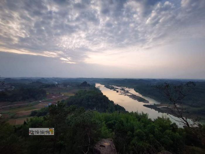 最后站在石栏边,远眺夕阳下庙坝沱江段的大美风光。