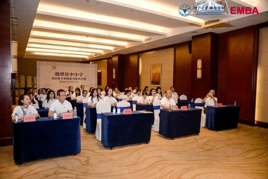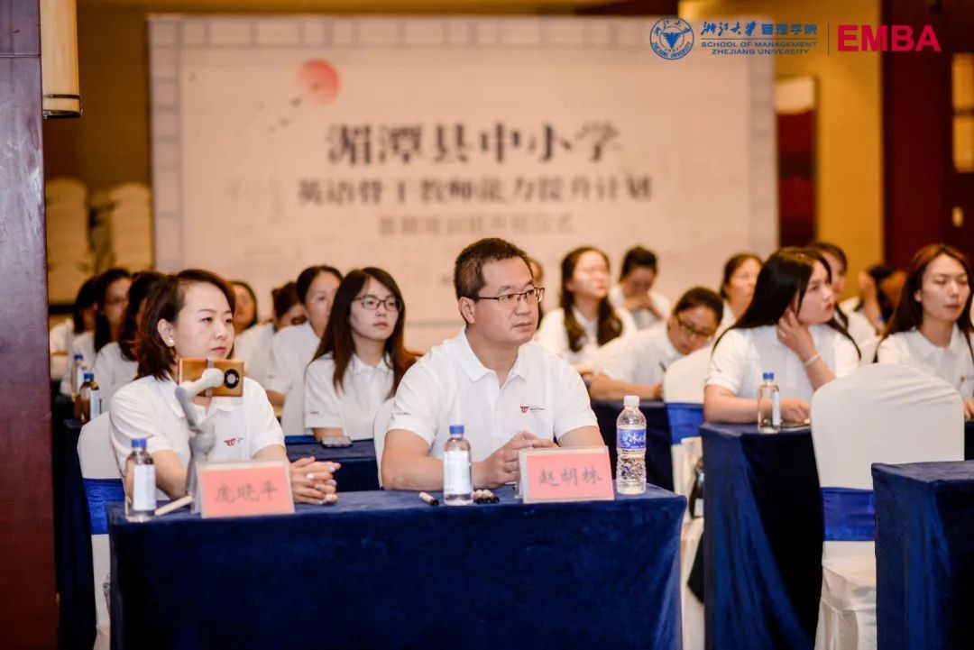 浙江大学EMBA教育中心、浙江大学管理学院湄潭教育发展基金执行委员会、浙江英孚教育培训学校、湄潭县教育体育局相关负责人,培训班参训学员参加开班仪式。