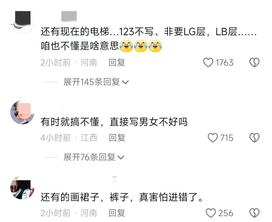 不出所料,这个事件在网络上迅速引起了轩然大波,并成为网友们热议的话题之一。网友们纷纷发表自己对这一事件以及类似情况的看法。其中很多人表示,卫生间标识应该更加简单明了,比如可以直接使用英文写明男厕和女厕。