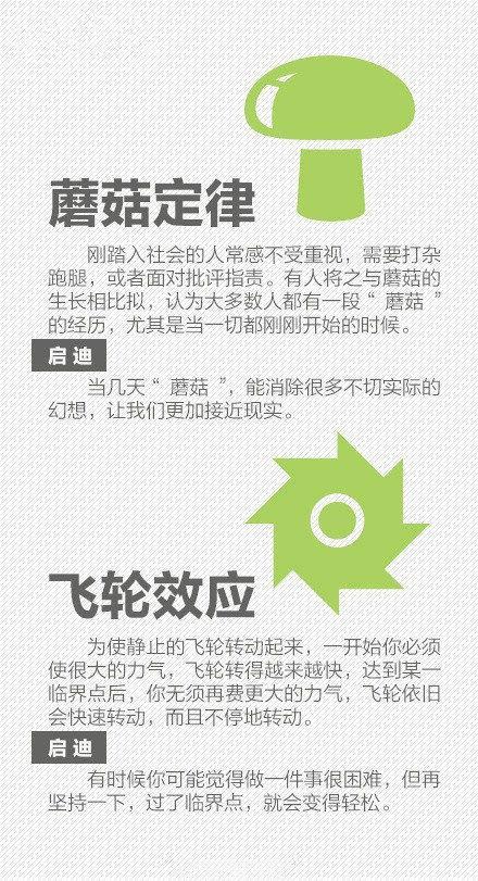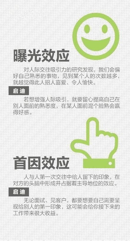 1⃣️毛毛虫效应:工作遭遇挫折时,应当努力寻求突破;2⃣️野马结局:不要因为别人的过失而伤害自己;3⃣️蘑菇定律:消除不切实际的幻想,接近现实;4⃣️飞轮效应:坚持一件事情直到临界点,就会变轻松;5⃣️曝光效应:若想增强人际关系,就要留心提高自己在别人面前的熟悉度……这些实用的心理学和管理学效应你一定要了解!