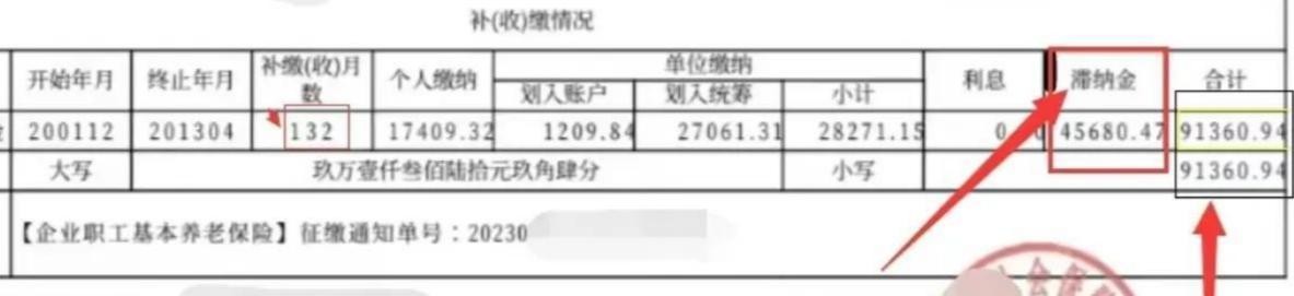 比如,上面网友补缴了45680.47元的养老金,滞纳金也是45680.47元,实际滞纳金会很多。
