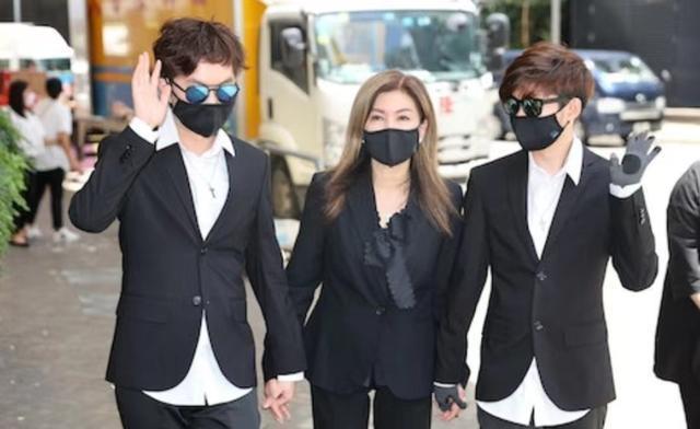 随后乐易玲也是有带着两个儿子与媒体们见面,不过就没有接受采访,看到乐易玲两个儿子都是戴着墨镜,虽然情绪低落,但还是礼貌地与媒体们打了招呼。