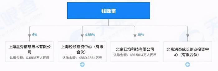 此外,他还是蚂蚁集团的股东之一。天眼查显示,钱峰雷为蚂蚁集团上海系的另一股东——上海经颐投资中心(有限合伙),截止2025年10月12日,钱峰雷持有该公司股份为4.88%。