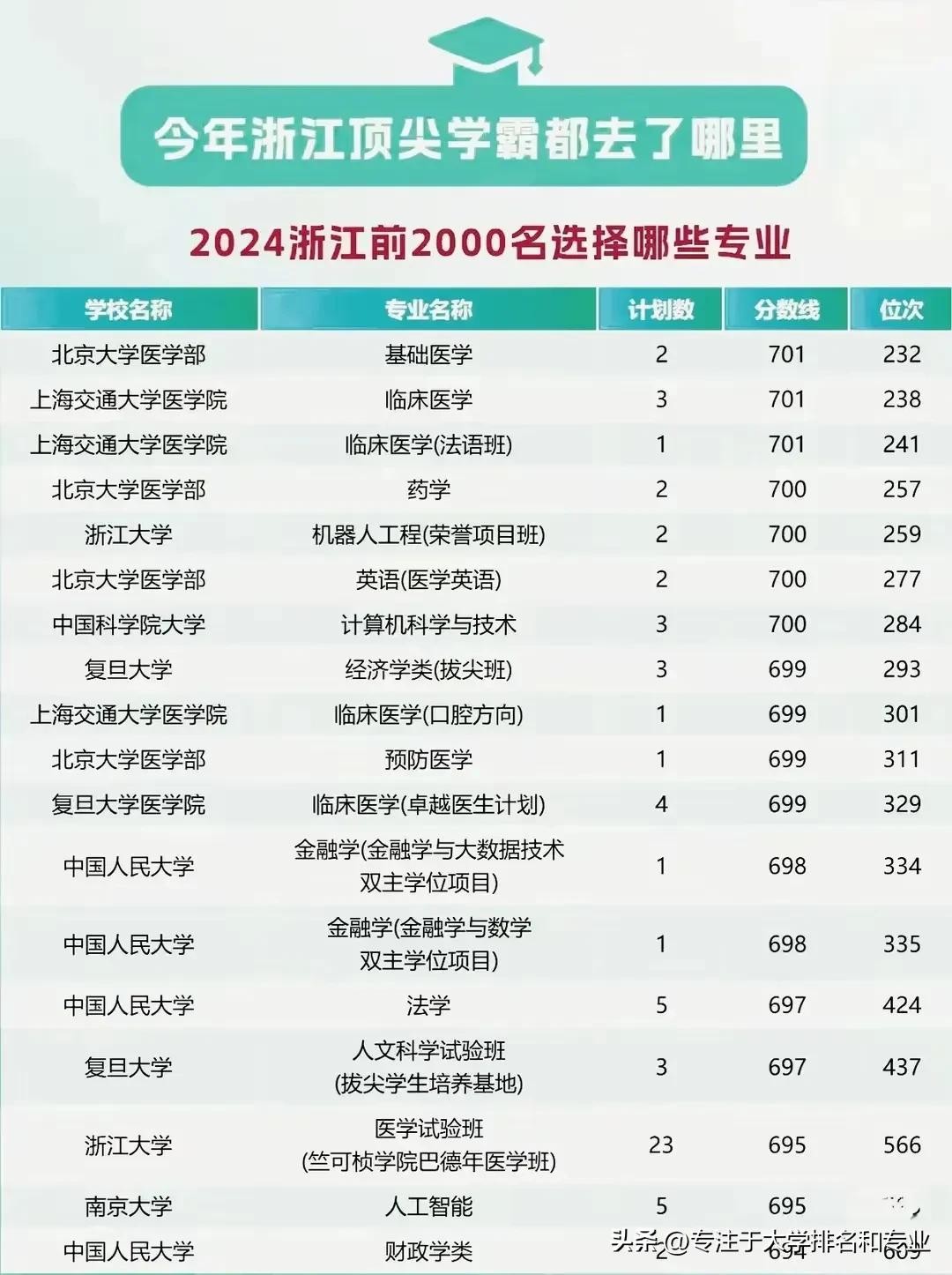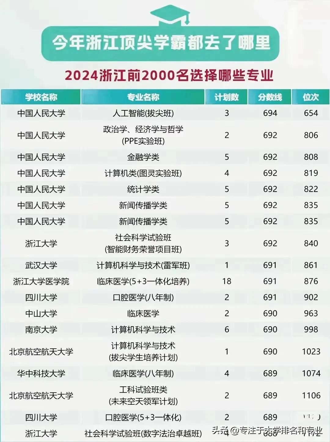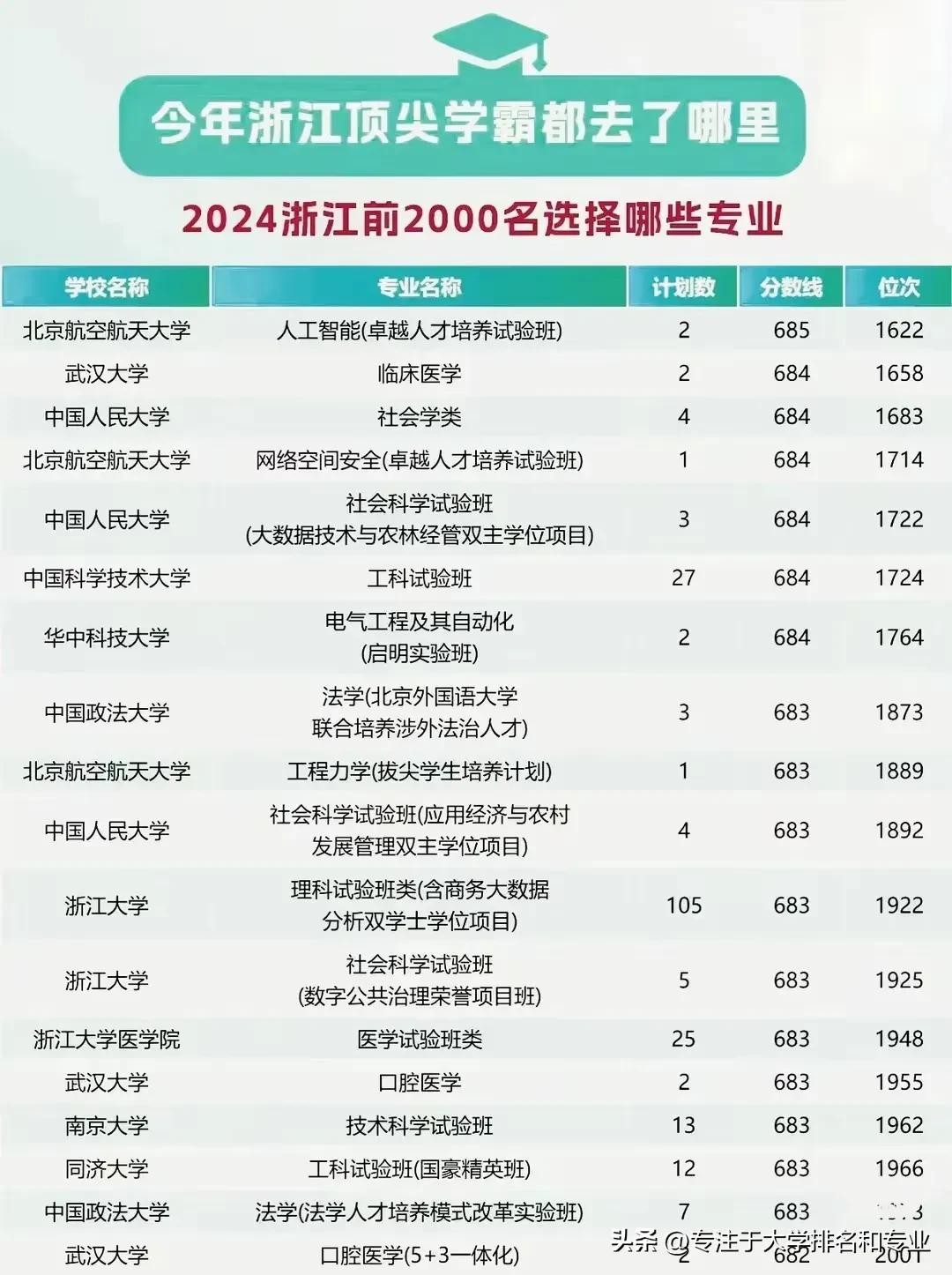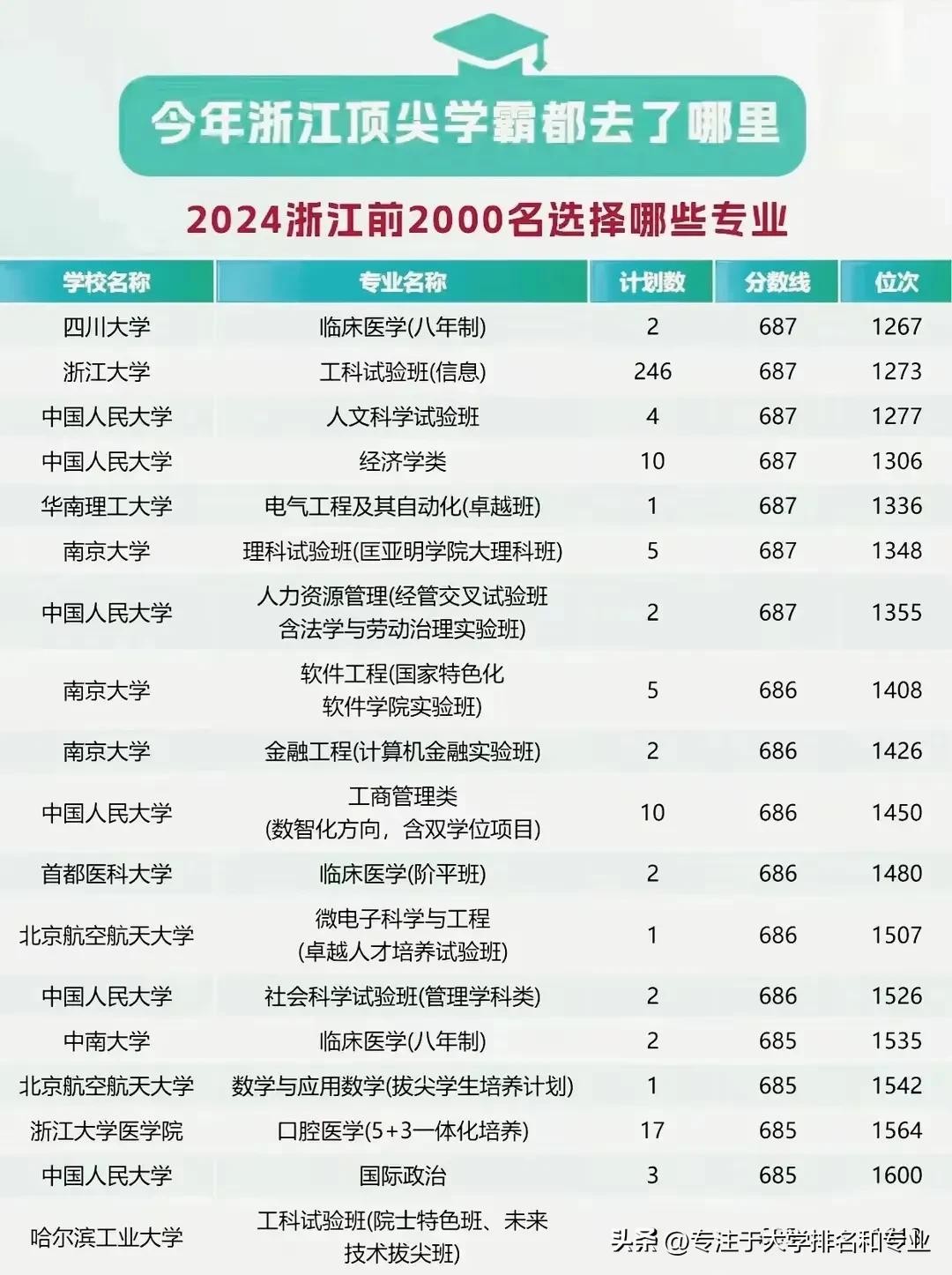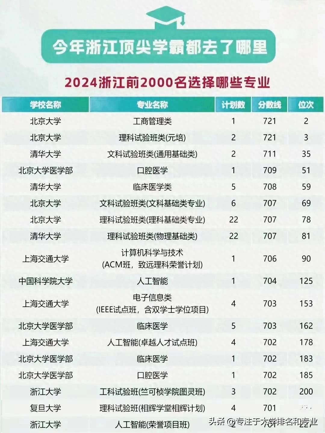 2024年浙江省前2000名顶尖学霸都去了哪些高校哪些专业?