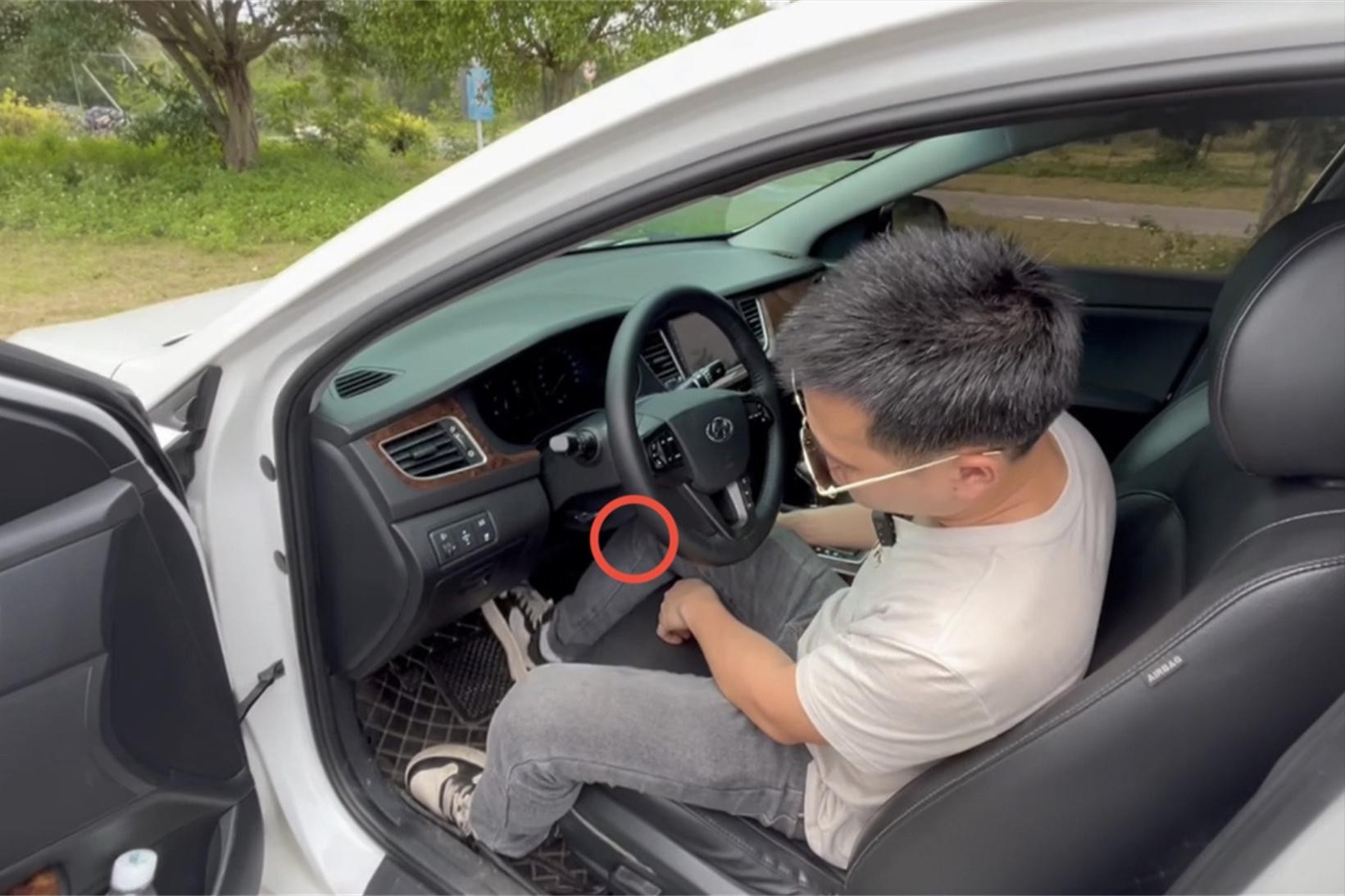 你这个膝盖顶着方向盘了,这时候要挪脚过去踩油门就变得很不方便,这样子就非常非常容易在紧急情况下脚挪动的距离不够,你以为已经挪到了刹车上面了,但时间上还是在油门上,导致踩错油门。