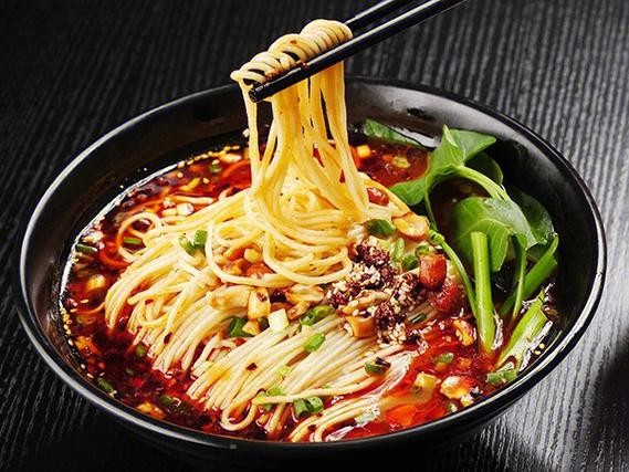 重庆小面是重庆的特色小吃,以其麻辣、鲜香、爽滑的口感而著名。小面的面条通常是由碱水面条制成,搭配各种调料和配料,如花生碎、芝麻酱、花椒等,让人回味无穷。