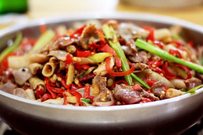 重庆鸡杂是重庆的特色菜肴之一,以鸡的内脏为主料,搭配辣椒和调料制成。鸡杂口感麻辣鲜香,有一定的嚼劲和韧性,是重庆人喜爱的美食之一。这道菜肴充分展现了重庆人对食材的处理和烹饪技艺。