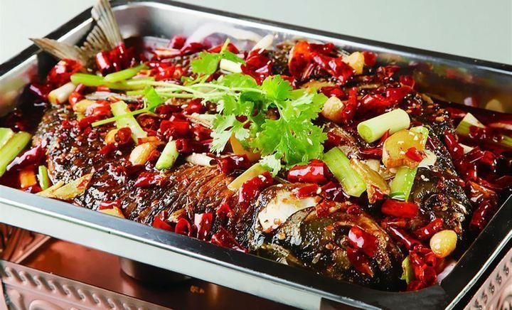 重庆烤鱼是重庆的特色菜肴之一,以鱼肉为主料,搭配各种调料和配菜烤制而成。烤鱼外皮酥脆,内肉鲜嫩,口感麻辣鲜香。这道菜肴充分展现了重庆人对食材的处理和烹饪技艺。