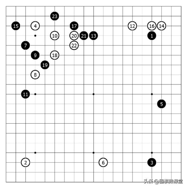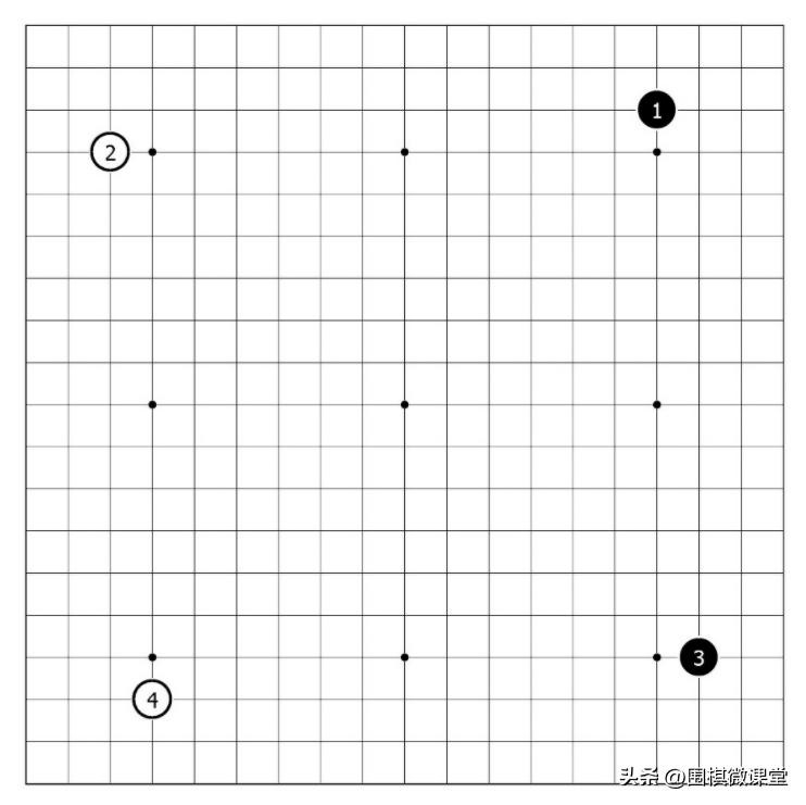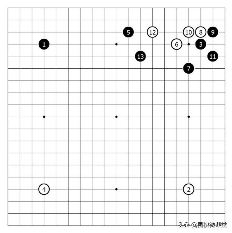 图1中,黑棋为三连星布局。前三手便把角星和边星连片,位于四路线上,意在取势。