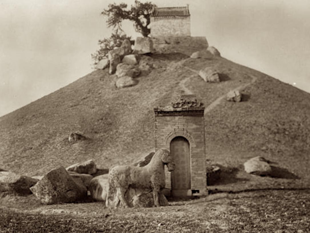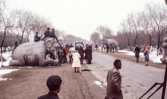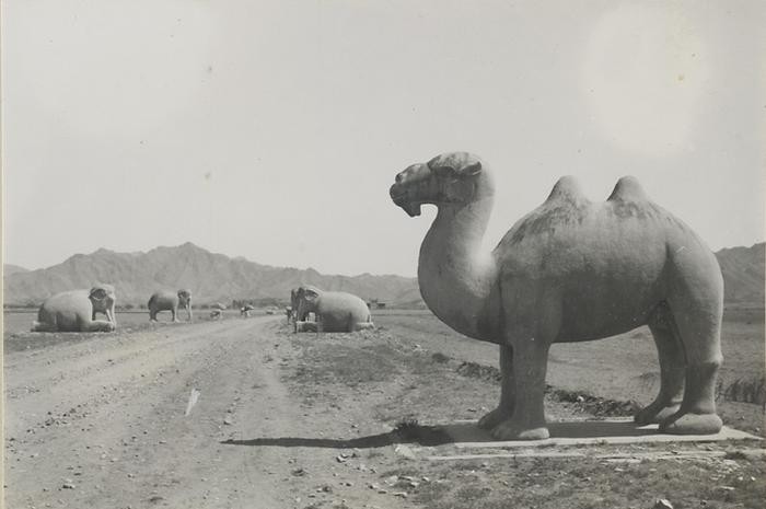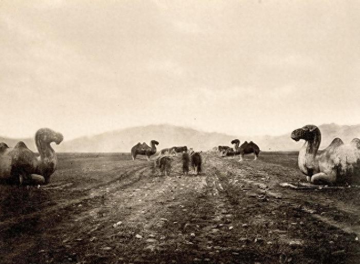 十三陵神道石像生老照片。上图拍摄于清朝末期,看起来十分荒凉破败,连一棵树都影子都没有。人们现在看到的大树,都是建国后才种植的。