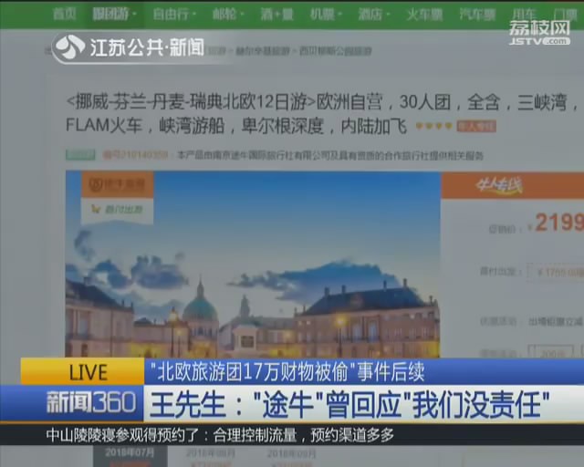 “北欧旅游团17万财物被偷”后续:“途牛”称已启动赔付程序