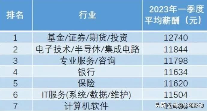 以 2023 年一季度的各行业平均薪酬排名为例,真正平均月薪过万的主要行业集中在高技术制造业、金融业和互联网行业。