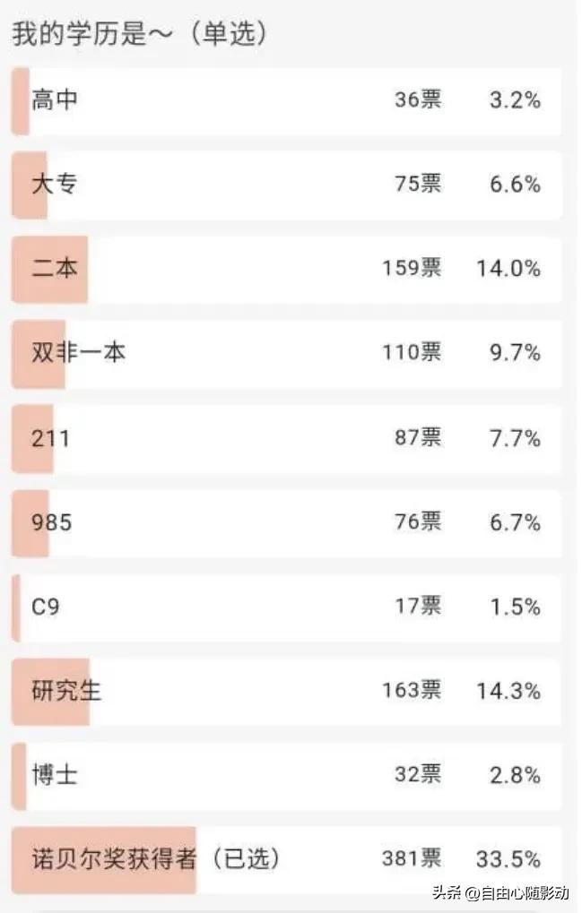 一则网络投票显示,甚至有大部分人投票选择学历为诺贝尔奖获得者。若你真将这些网络言论当作事实,那只能说明你过于天真。
