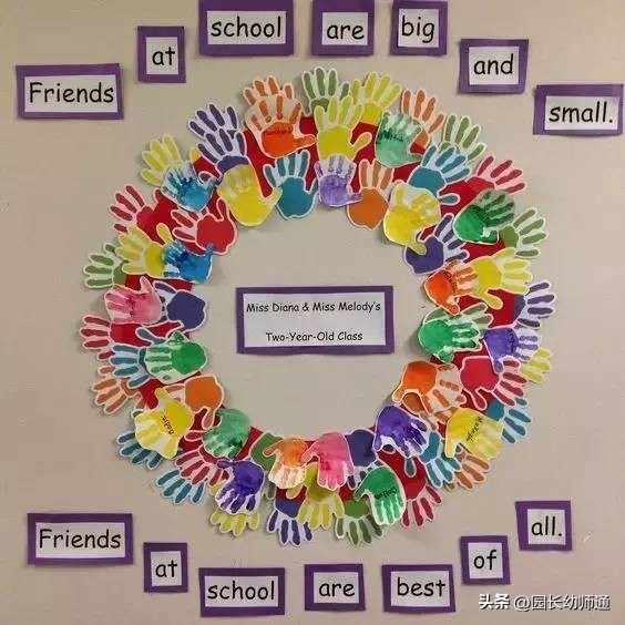 小手印创意,全班小朋友的小手组合成花环,让孩子们觉得我们是最有爱的集体!