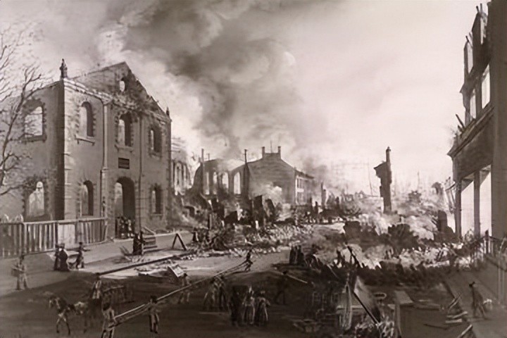 而这场席卷城市的大火,烧了整整三天三夜,几乎80%的建筑,都在这一过程中付之一炬,高层也只能欲哭无泪。