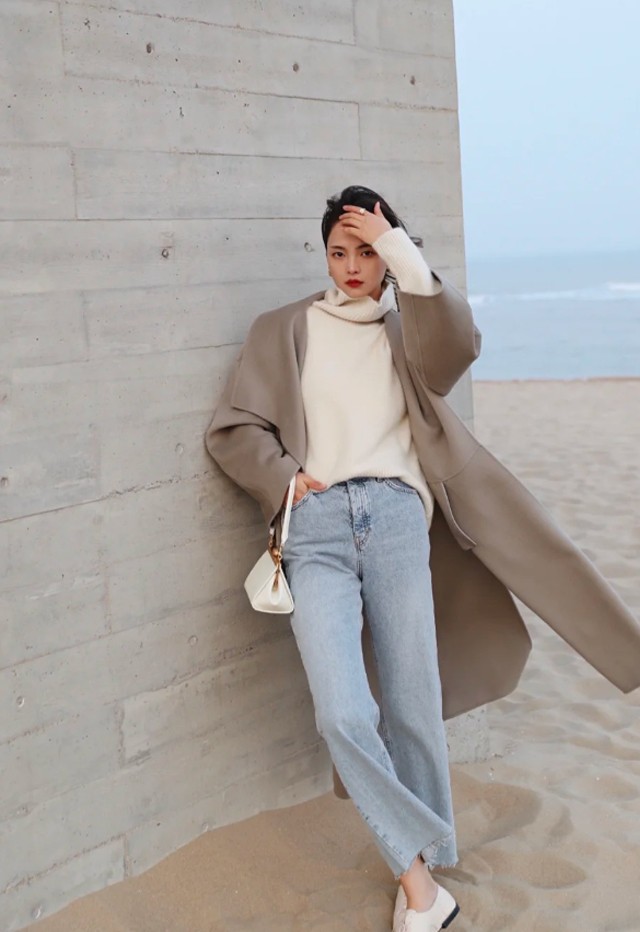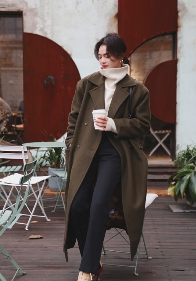 毛呢大衣不兴了,今年流行羊绒大衣,搭配这几条裤子超好看
