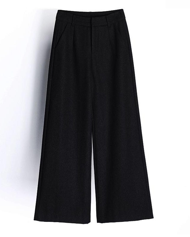 高个子女性只要不嫌腿长,可以任意挑选拖地款,搭配长款的羊绒大衣既大气又时髦。很多人觉得阔腿裤是高个子的专属,这种错误的认知让小个子对阔腿裤望而却步,毕竟穿上又宽又大的阔腿裤一不留神就拖地了,简直是压身高的存在。