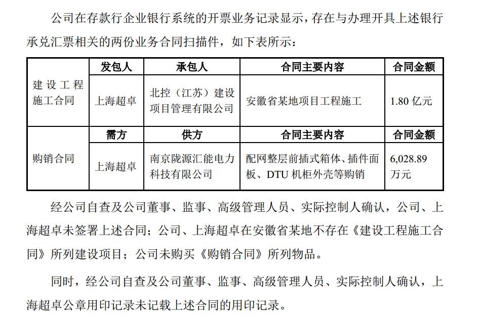 超卓航科在回复函中表示,经公司自查及公司董监高、实控人确认,公司、上海超卓与持票人不存在购销业务关系,未与持票人签署过与银行承兑汇票相关的业务协议,也并未签署相关施工合同和购销合同。
