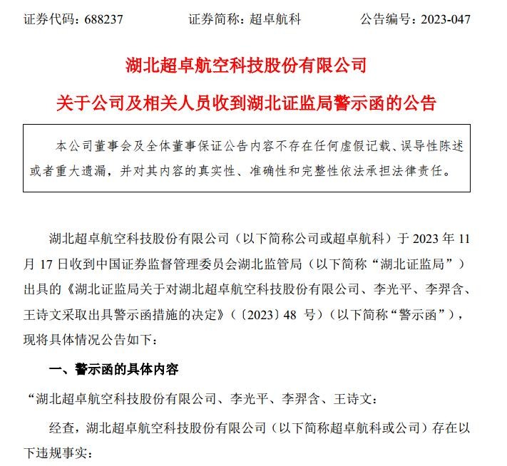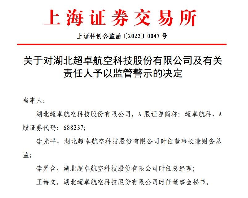 同时,上交所也根据上述违规事实对超卓航科及有关责任人予以监管警示。